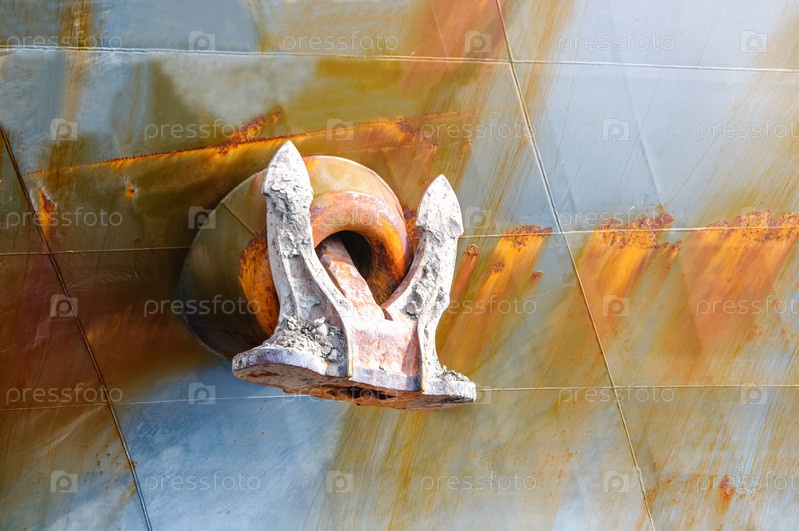 Морской якорь висит на борту старого ледокола