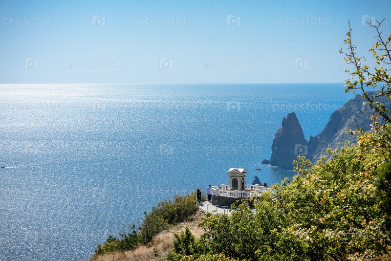 Крым, Балаклава, 15 сентября 2019 г.: Пляж Джаспер возле Севастополя и мыса Фиолент