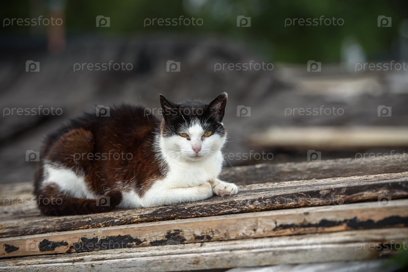 Бездомный кот сидит на крыше