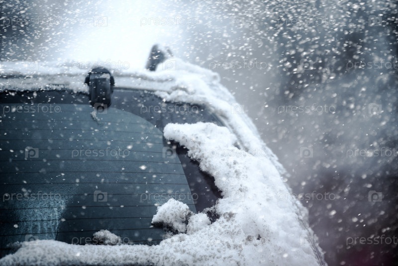 Крупный план автомобиля в снегу в зимнем городе