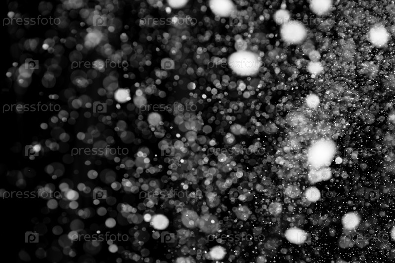Падает снег на черном фоне. Текстура для наложения. Снежная погода, метель и гроза. Эффект боке. Светящиеся снежинки