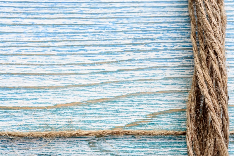 Джутовый шпагат на синем деревянном фоне