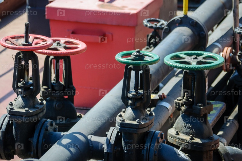 Россия, Санкт-Петербург, май 2021 г.: Клапаны на палубе нефтяного морского танкера