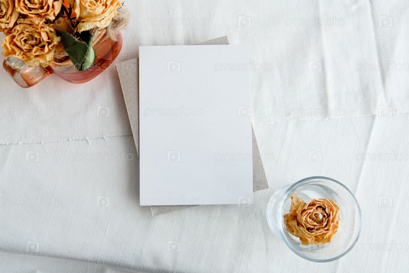 Модный белый фон и пустая открытка - белый фон, желтые розы и пространство для копирования. Романтическая открытка