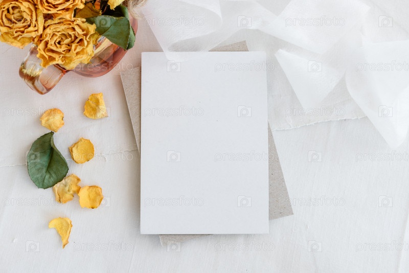 Романтическая пустая открытка на белом фоне для поздравлений. Женственное приглашение на свадьбу
