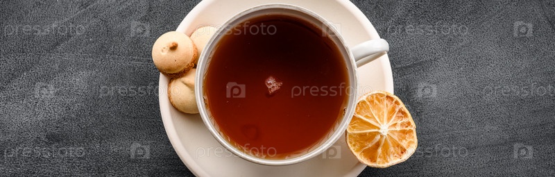 Чашка чая на черном фоне, вид сверху