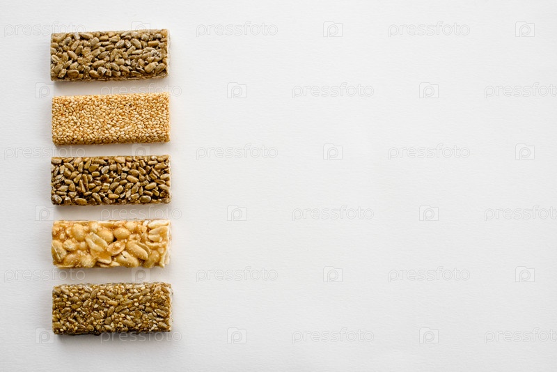Традиционные восточные сладости козинаки на белом столе, вид сверху