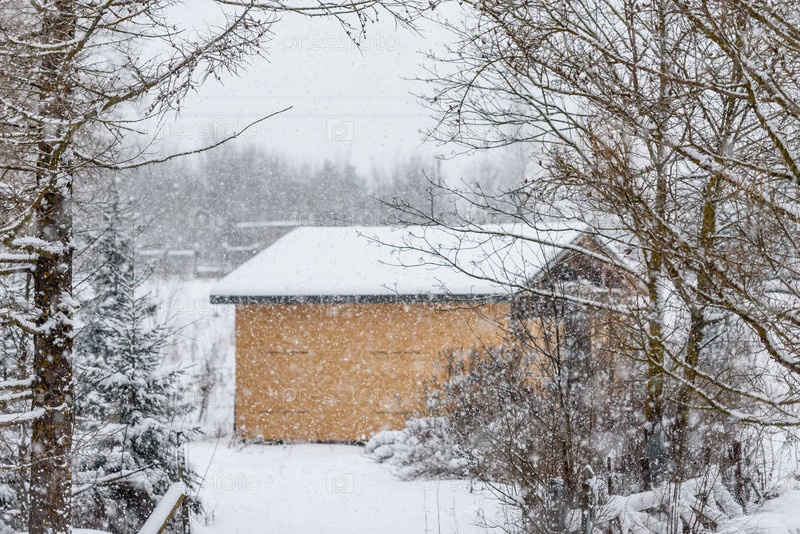 Снегопад зимой - зимний день. Красивый зимний пейзаж