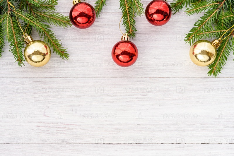 Рождественский фон - рамка из елочных веток и шаров