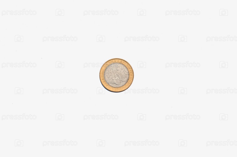 Денежные монеты на столе - российский рубль на белом