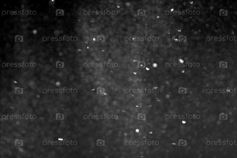 Падает снег на черном фоне. Текстура для наложения. Снежная погода, метель и гроза. Эффект боке. Светящиеся снежинки