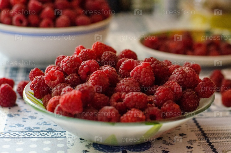 тарелка с малиной