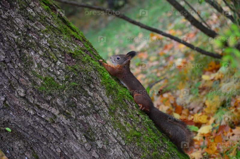 Белка карабкается на дерево