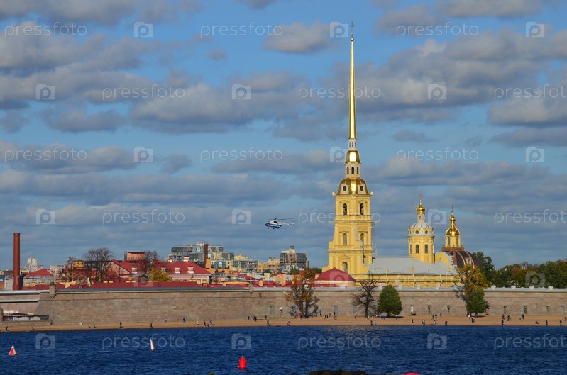 Прогулочный вертолет над Петропавловской крепостью в Санкт-Петербурге