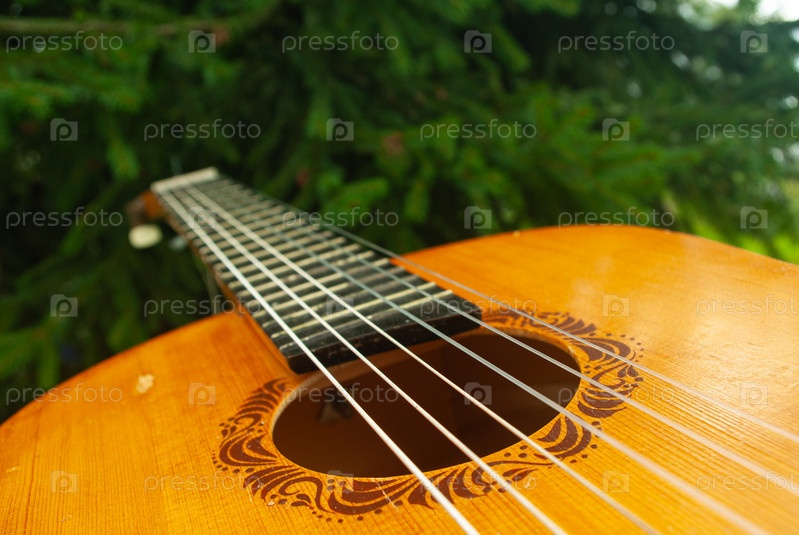 Старая советская гитара из фанеры, классическая, оранжевого цвета