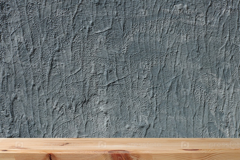 Пустой деревянный стол со старым гранж-фоном с местом для текста, серая бетонная стена с яркой текстурой, деревенский стиль, эко-концепция, кухонный макет для дизайна и витрина для демонстрации продукции, выборочный фокус