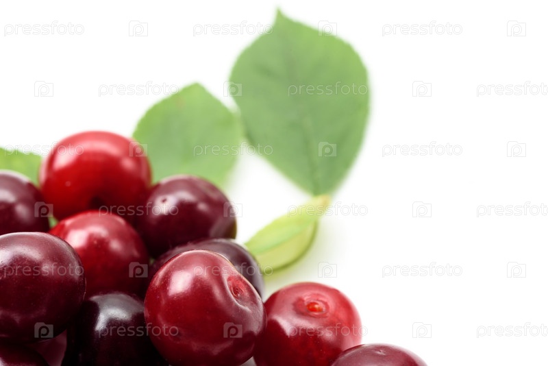 Спелые ягоды вишни на белом фоне, крупный план