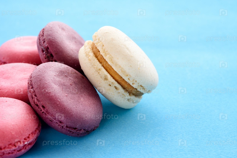 Красочные французские макароны на синем фоне