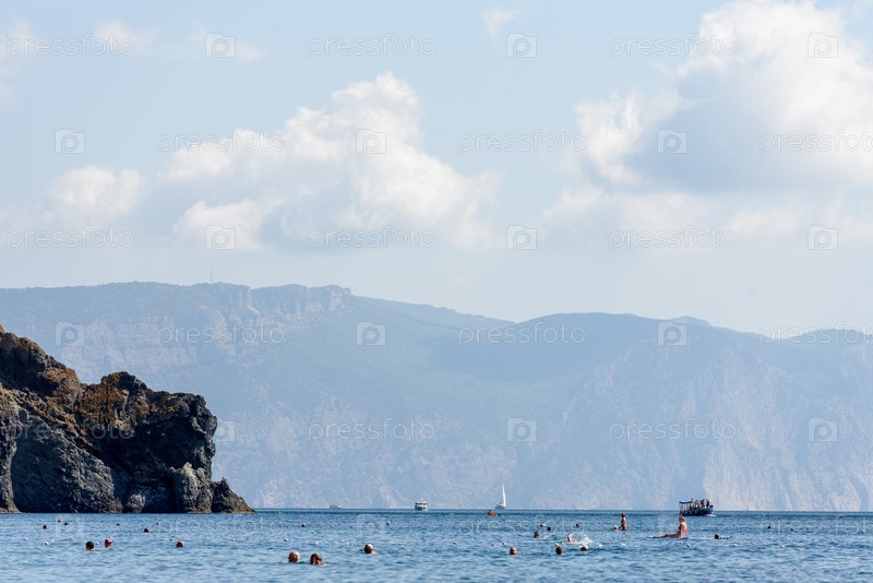 Крым, Балаклава, 15 сентября 2019 года: Пляж Джаспер под Севастополем и концепция пляжного отдыха в Крыму