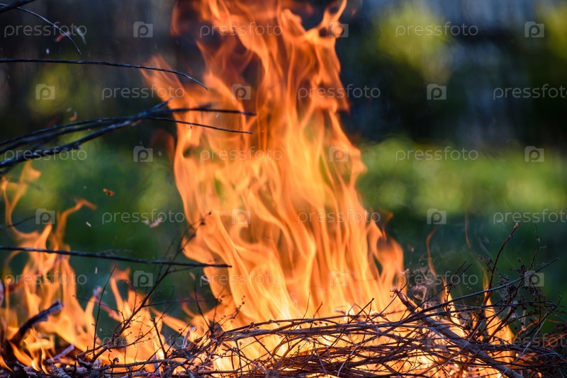 Горящий сухой хворост в огне