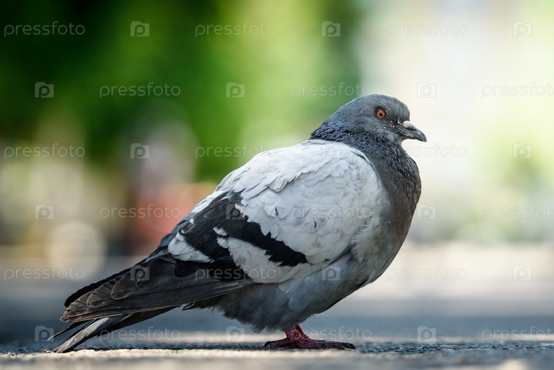 Голубовато-серый городской голубь (columba livia Domestica) сидит на тротуарной валуне