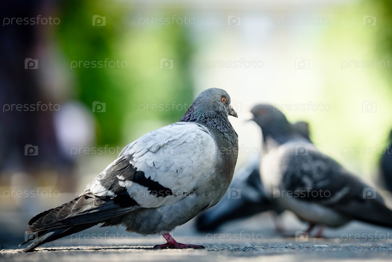 Голубовато-серый городской голубь (columba livia Domestica) сидит на тротуарной валуне