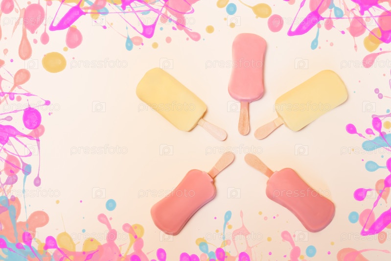 Мороженое на палочках на пастельном фоне