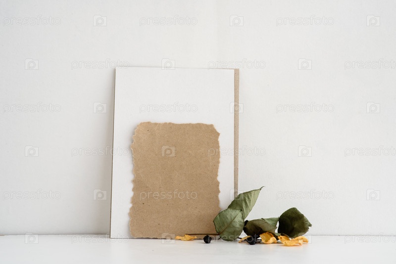 Фон канцелярских товаров моды на белом фоне. пустая открытка для надписи. Свадебный винтажный фон. Пригласительная открытка