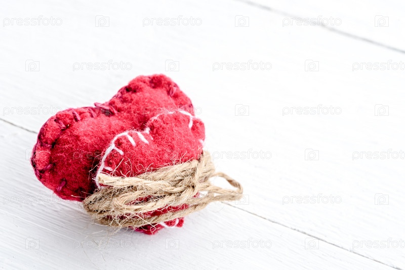 Два декоративных сердца на деревянных фоне. Символ любви