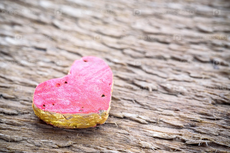 Декоративное сердце на деревянном. День святого Валентина. Символ любви