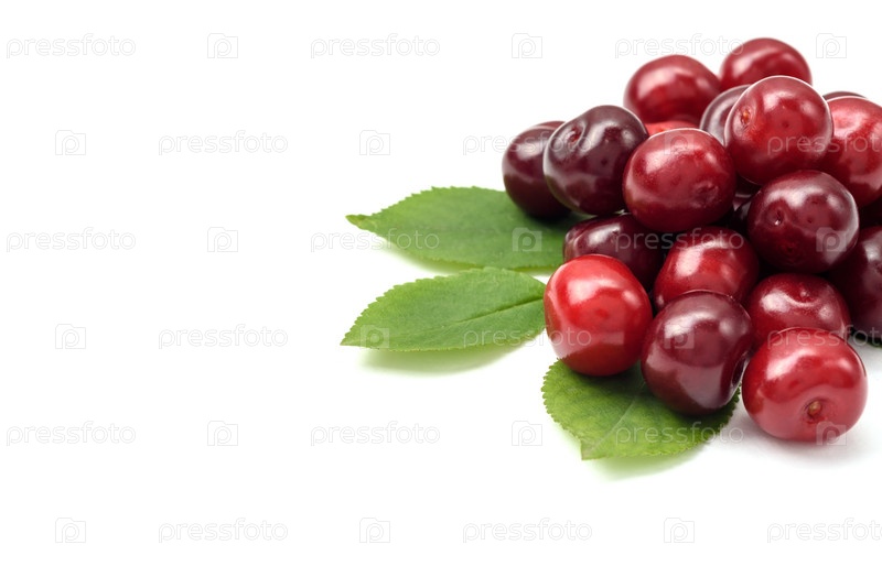 Спелые ягоды вишни на белом фоне, крупный план