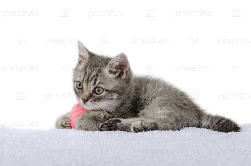 Британский котёнок играл смешно - изолированный белый