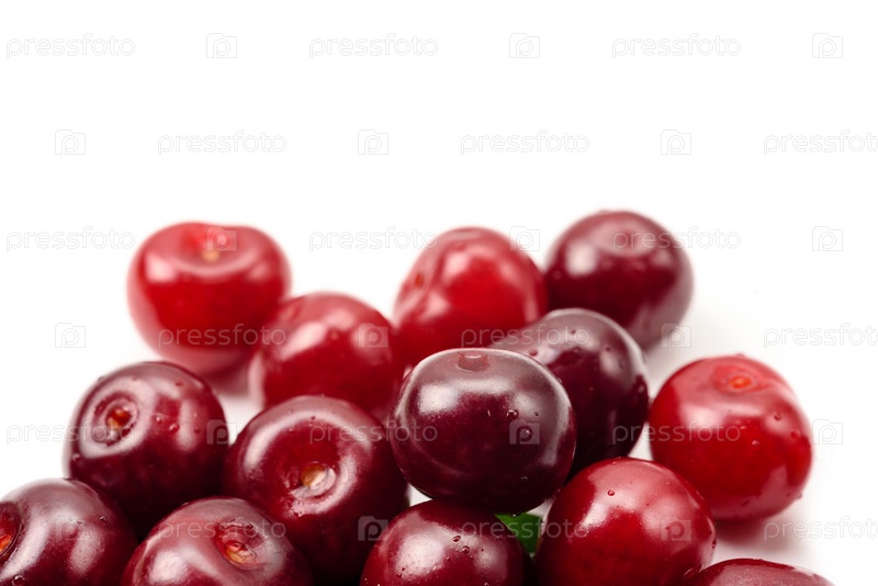 Спелая сочная вишня на белом фоне
