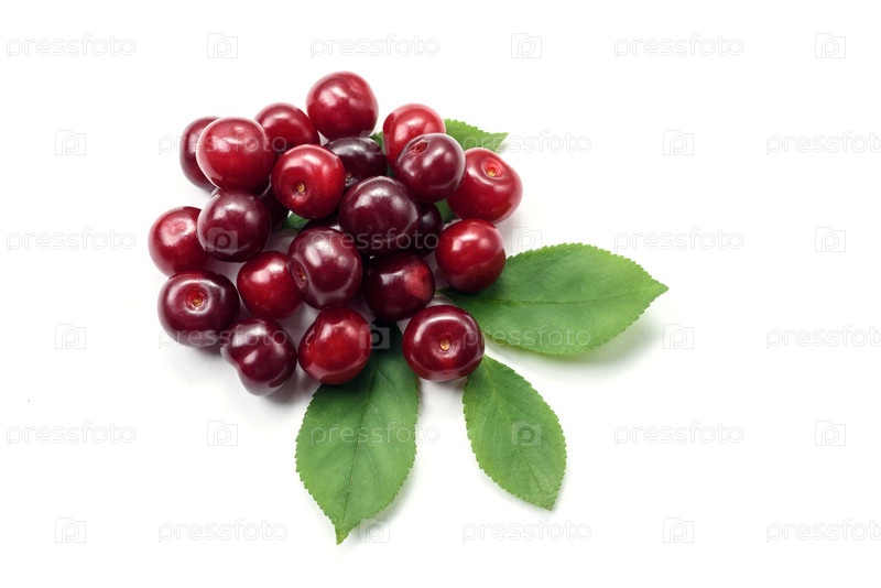 Спелая сочная вишня на белом фоне
