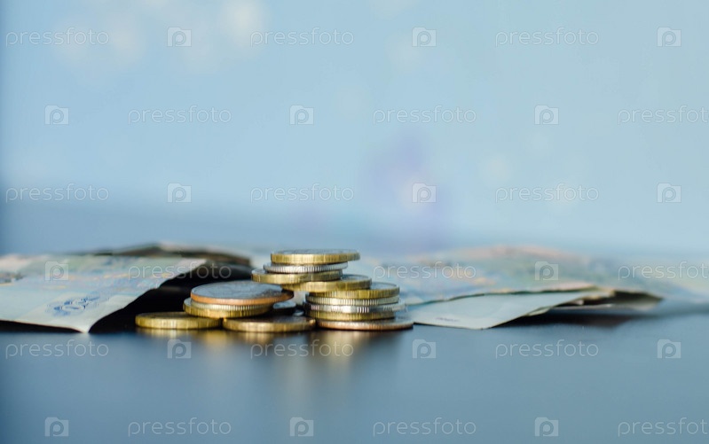Денежные монеты на столе - российский рубль