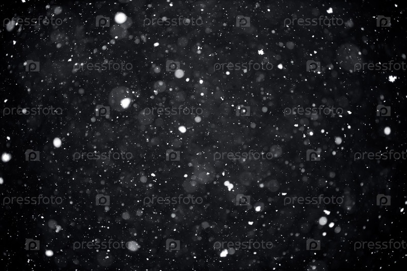 Падающий снег на черном фоне. Сильный снегопад, Вьюга