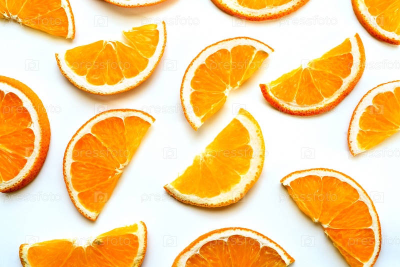Ломтики апельсина, изолированные на белом фоне