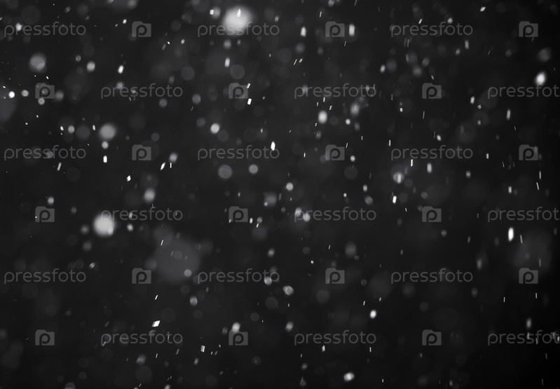 Падающий снег на черном фоне. Снегопадная погода. Текстура для наложения