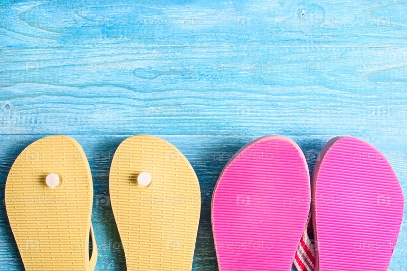 Резиновые тапочки на деревянном фоне