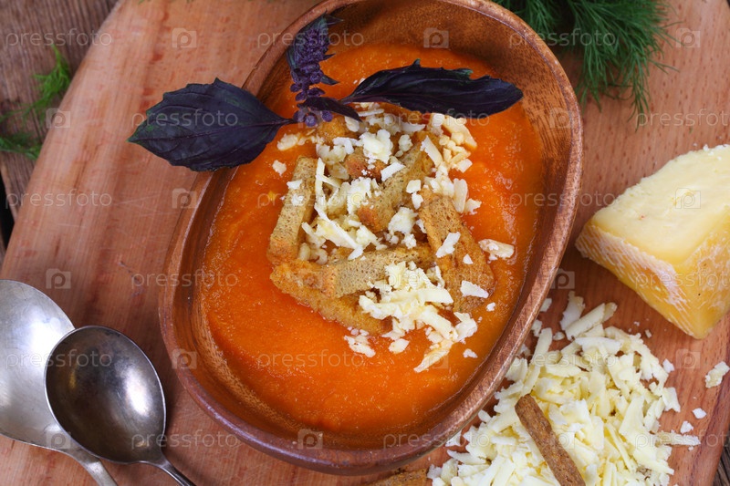 Суп пюре с сыром томм и сухариками