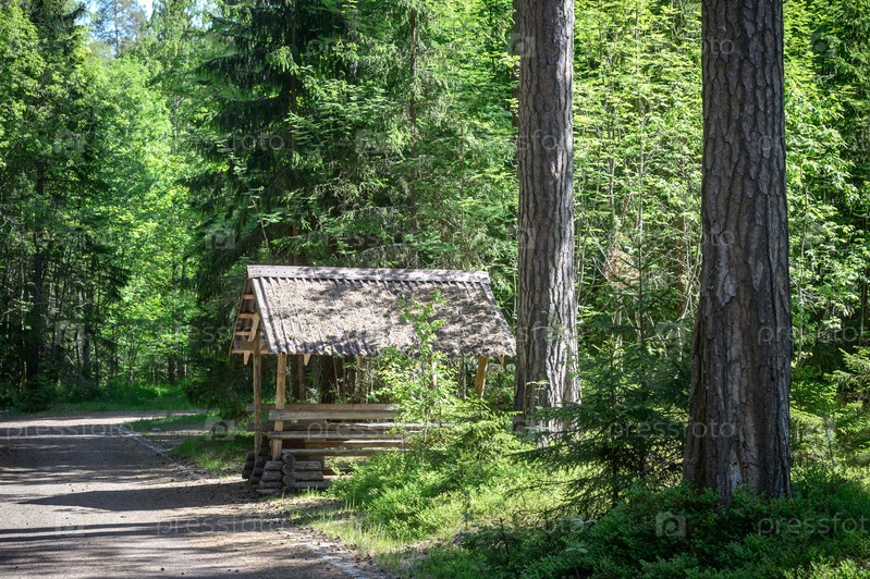 Деревянная беседка для отдыха в летнем парке