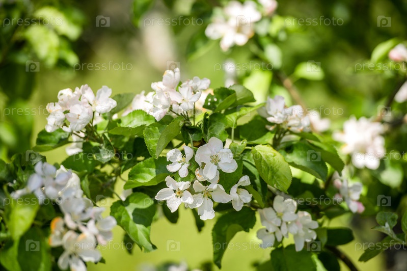 Цветущая ветка яблони в весеннем саду
