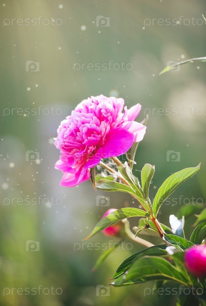 Красивый цветок пиона в солнечном свете в саду крупным планом