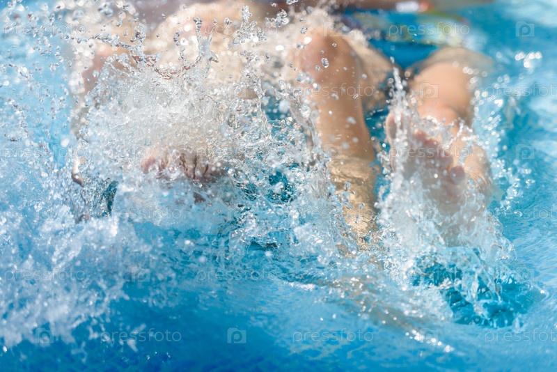 Женская нога в воде в бассейне, крупный план