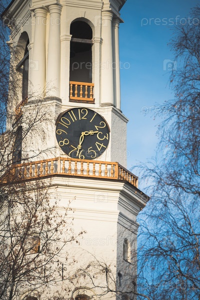 Россия, Выборг, 06.11.2019: Старая башня с часами в Выборге