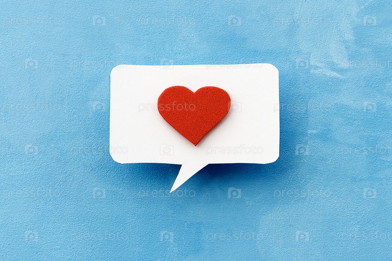 Выноска для текста с красным сердцем. Нравится хорошее настроение и отзывы клиентов. Концепция бизнеса или общения