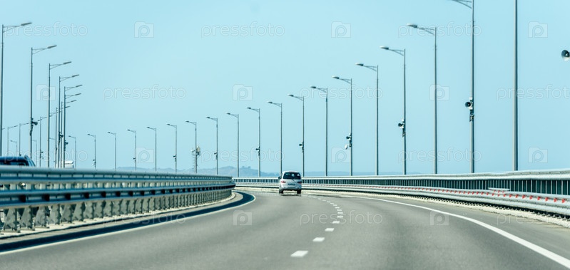 Россия, Крым, 11 сентября 2019 г.: Дорога в Крым через Крымский мост. путешествие в Крым на машине