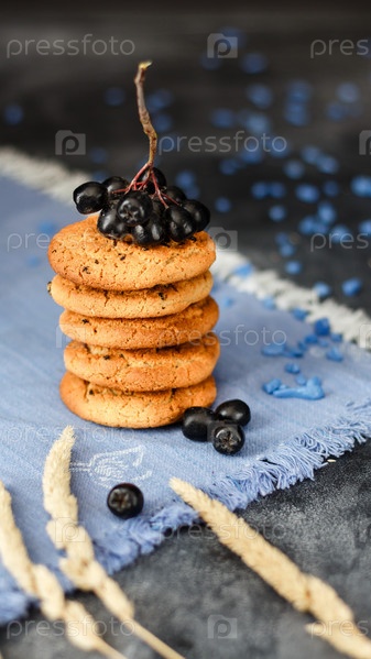 Свежее овсяное печенье на темном фоне