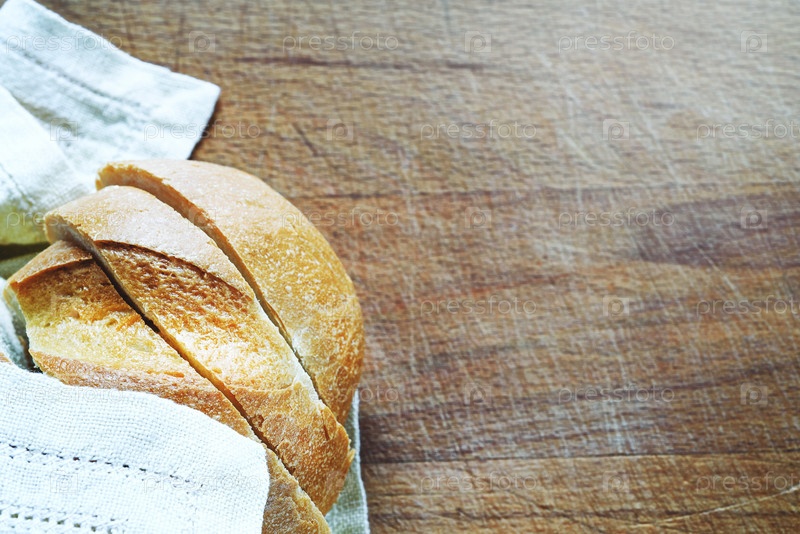 Белая булочка в льняной салфетке на деревянном фоне, тонированная