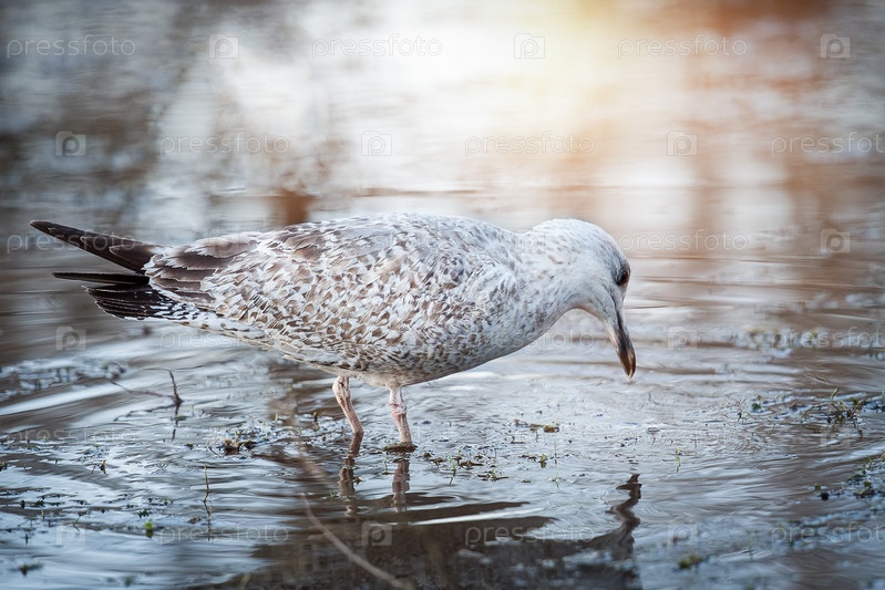 Чайка ходит по мелководью